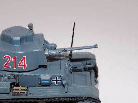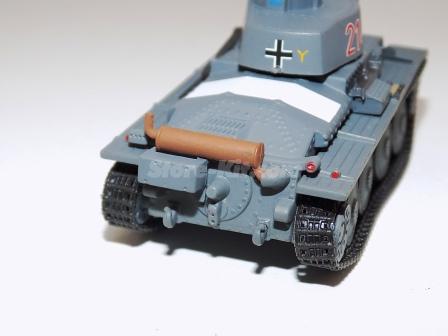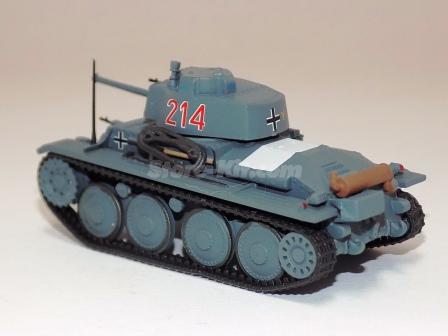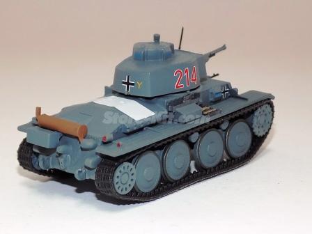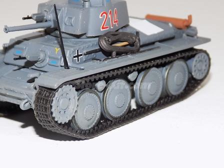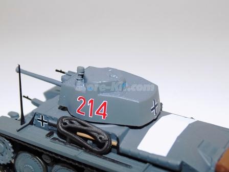 Descrição: Miniatura a escala 1/72, com torre e canhão moveis. M.F - Carroçaria de zamak 30%. Chassis, carroçaria, canhão, torre, rodas plástico 60%. Lagartas borracha 10%. M = C-66mm, L_33mm, A-34mm, 31Gr
