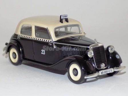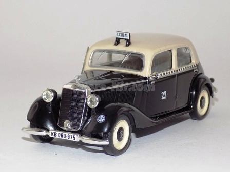 Descrição: Miniatura a escala 1/43. Edição Táxi de Berlim de 1952. M.F - Carroçaria de zamak 50%. Chassis, bancos, cmds, tbl, jantes de plástico 40%. Pneus de borracha 10% M = C-101mm, L-40mm, A-41mm, P-63Gr