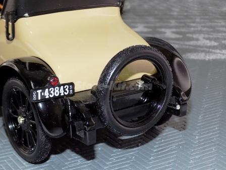 Descrição: Miniatura com abertura 6 módulos capos, portas, direcção móvel. E.L M.F - Carroçaria de zamak 45%. Chassis, capota, bancos, cmds, rodas, motor de plástico 45%. Pneus de borracha 10%. M = C-228mm, L-97mm, A-104mm, P-523Gr