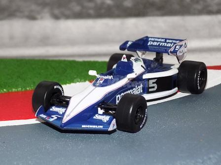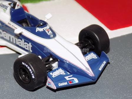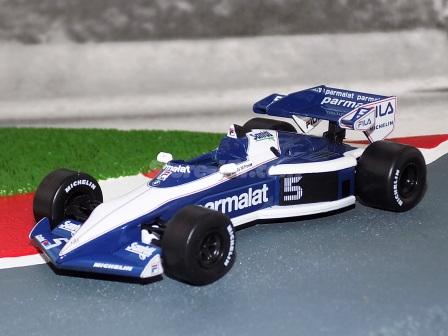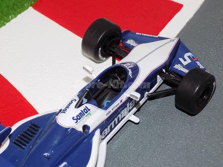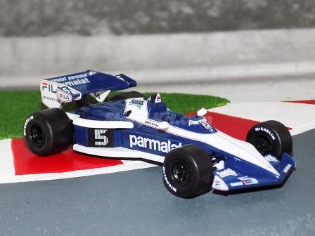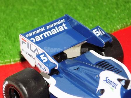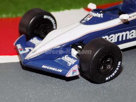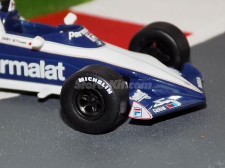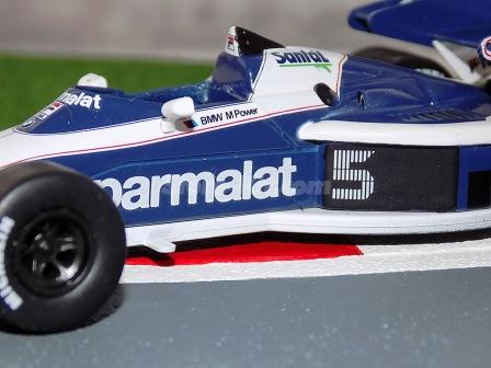 Descrição: Miniatura a escala 1/43. Edição Team Brabham 1983. Piloto Nelson Piquet. M.F - Carroçaria de zamak 55%. Chassis, banco, asas, motor, jantes de plástico 30%. Pneus de borracha 10%. M = C-105mm, L-51mm, A-25mm, P-43Gr
